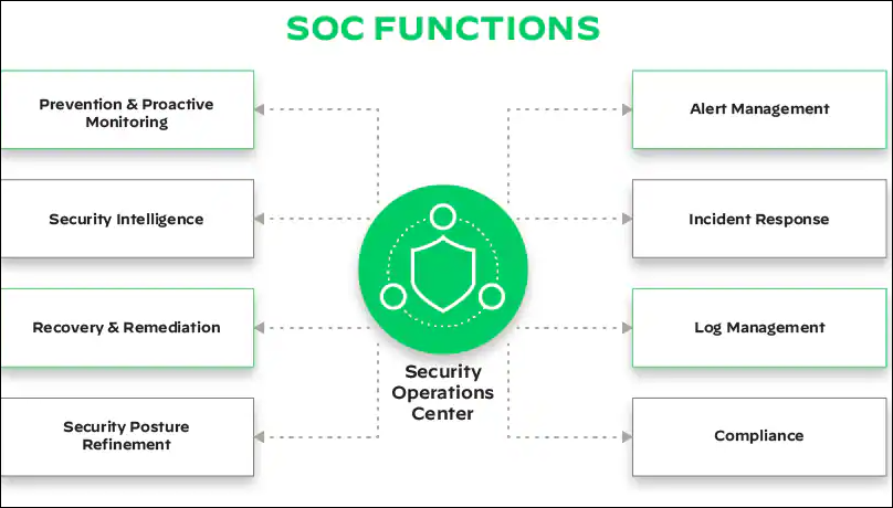 - A Security Operations Center (SOC) is vital for centralized security monitoring and response.