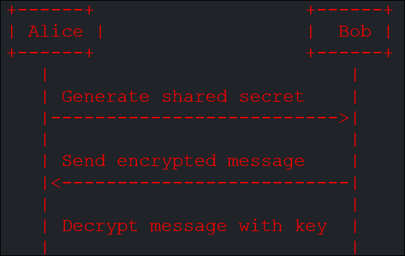 Figure 2. In this diagram, Alice and Bob generate a shared secret key and use it to encrypt and decrypt messages.